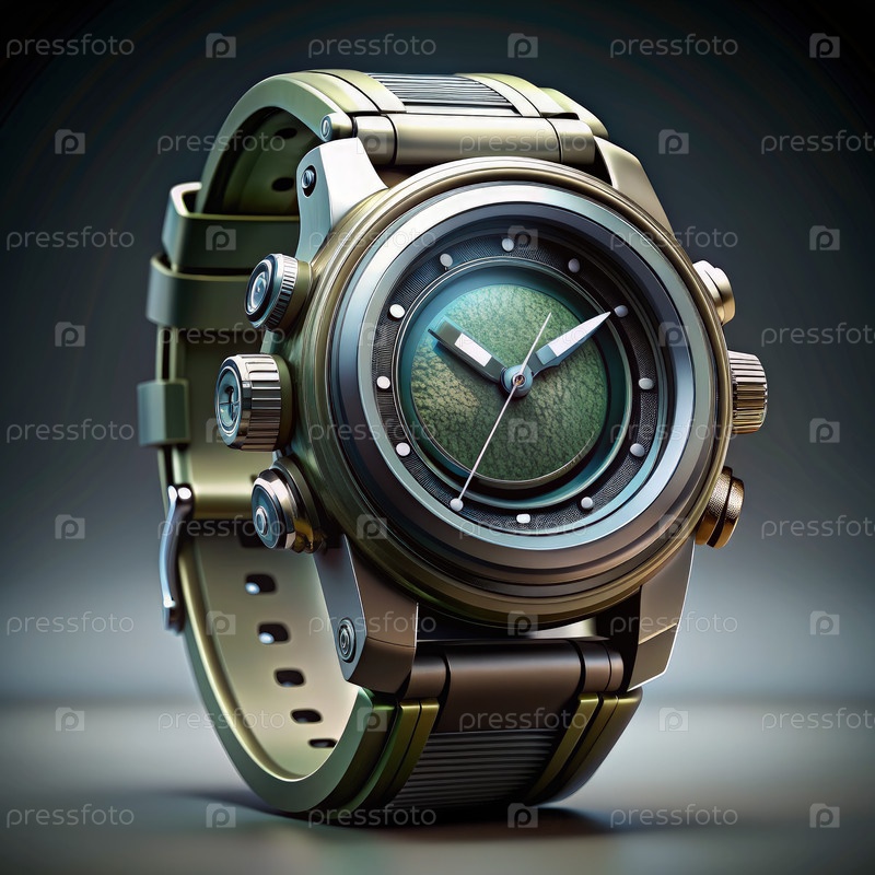 Военно-вдохновленные наручные часы с зеленой циферблаткой и металлической лентой. генеративный современный ИИ