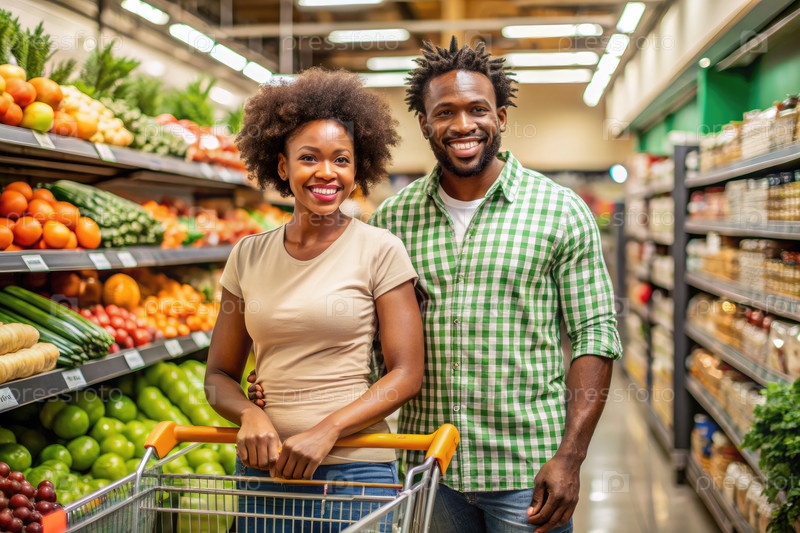 Женщина и мужчина, стоящие в продуктовом магазине