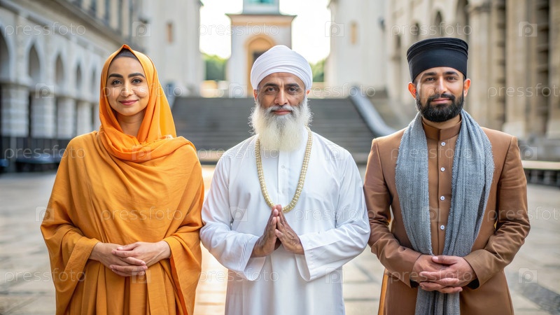 Три человека разных вероисповеданий стоят вместе в единстве