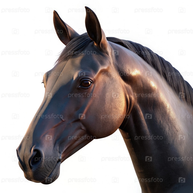 Близкий профиль Силуэт лошадиной головы на белом фоне