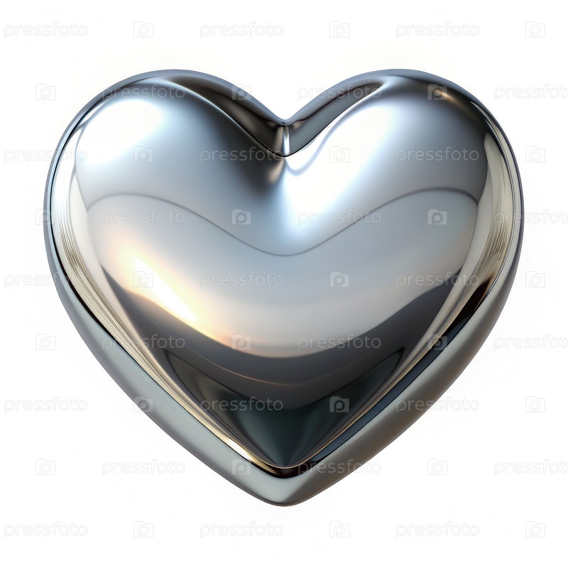 Иллюстрация блестящей серебряной формы сердца на белом фоне