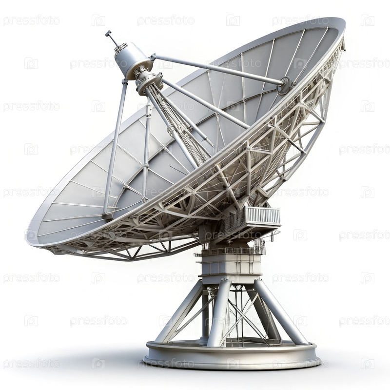 Большая спутниковая антенна на белом фоне