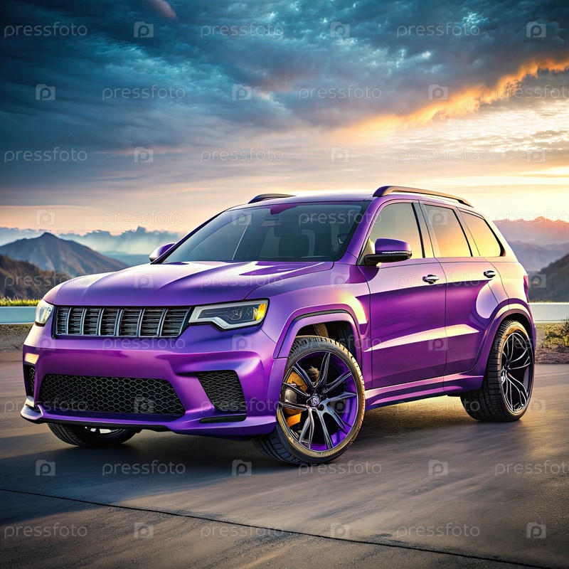 Джип, припаркованный перед горой. генеративная фиолетовая ИИ