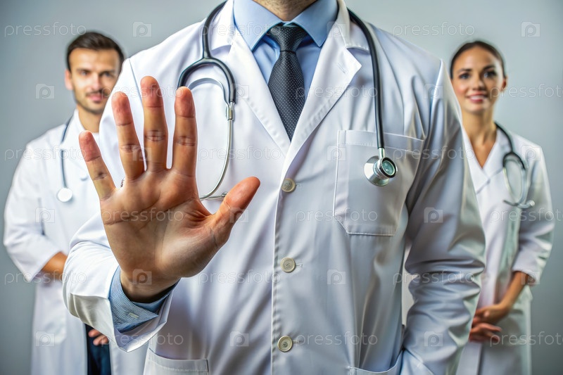 Человек в белом лабораторном пальто, держащий руку
