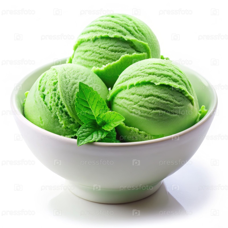 Три ложки зеленого мятного мороженого в White Bowl