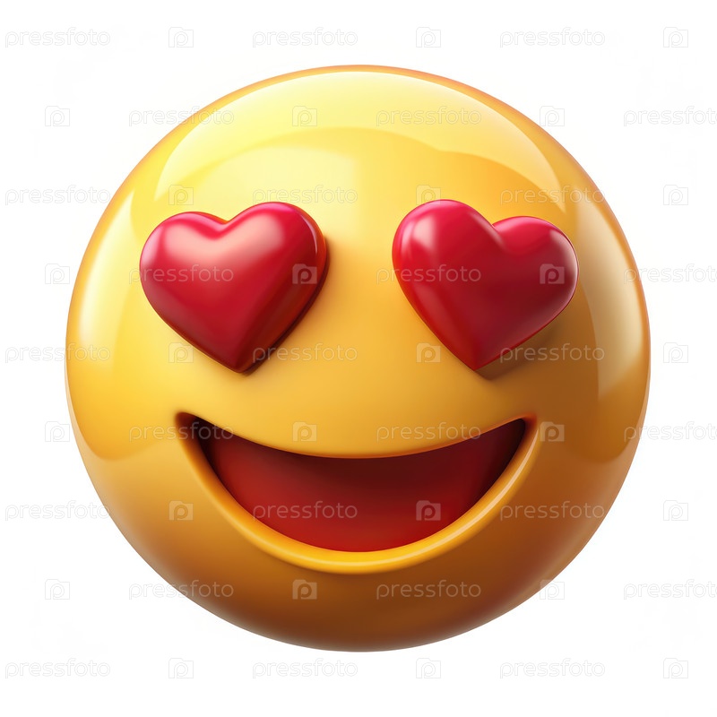 Улыбающийся эмодзи с глазами в форме сердца на белом фоне