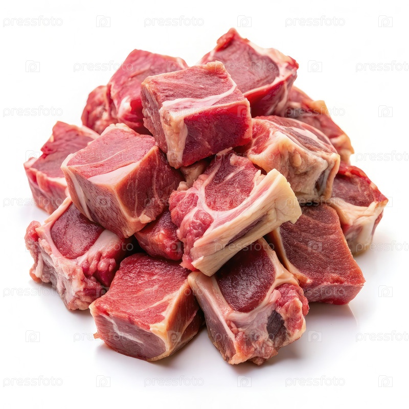 Куча сырого мяса на белом фоне