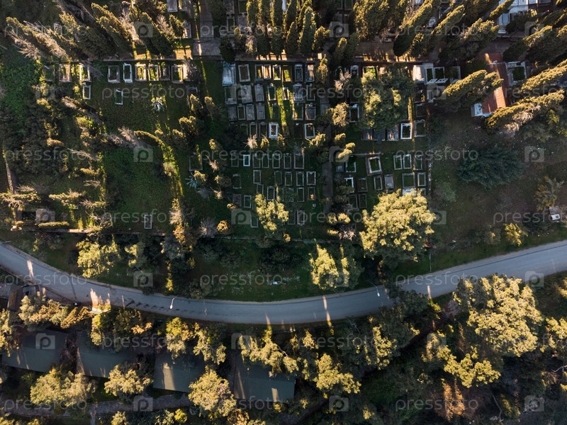 Вид с беспилотника на кладбище Остров Буюкада в Мраморном море Принцевые острова, Стамбул, Турция