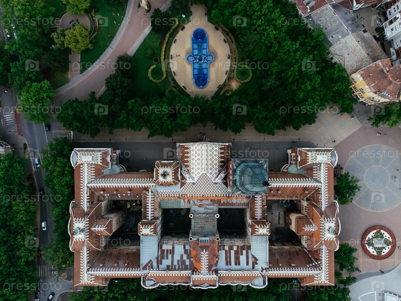 Вид с воздуха на мэрию Суботицы и главную площадь в Суботице, Сербия со своей исторической архитектурой. g