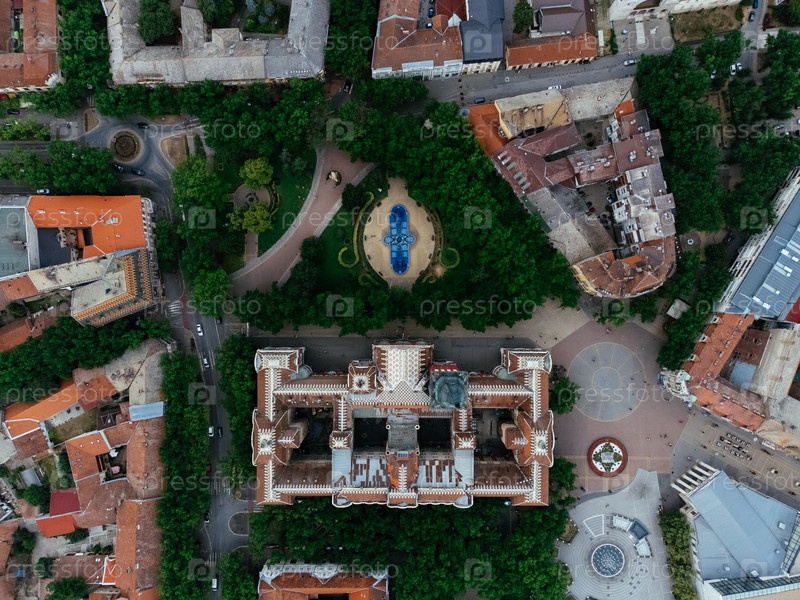 Вид с воздуха на мэрию Суботицы и главную площадь в Суботице, Сербия со своей исторической архитектурой. g