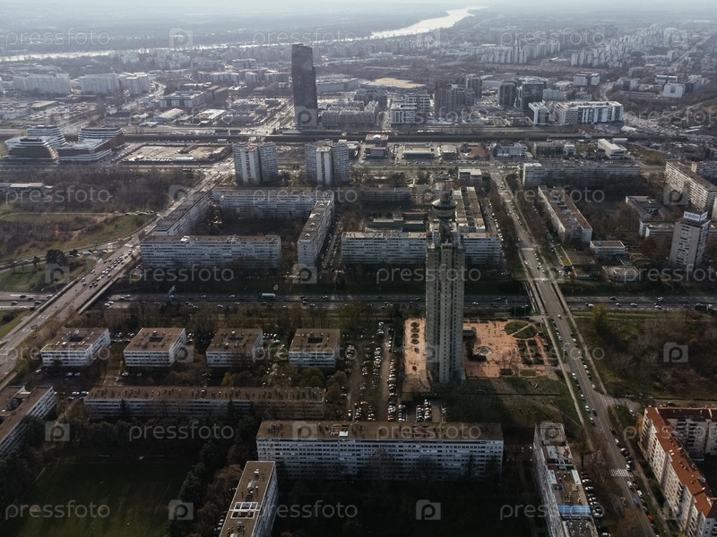 Вид с дронов города Белграда, района Новый Белград