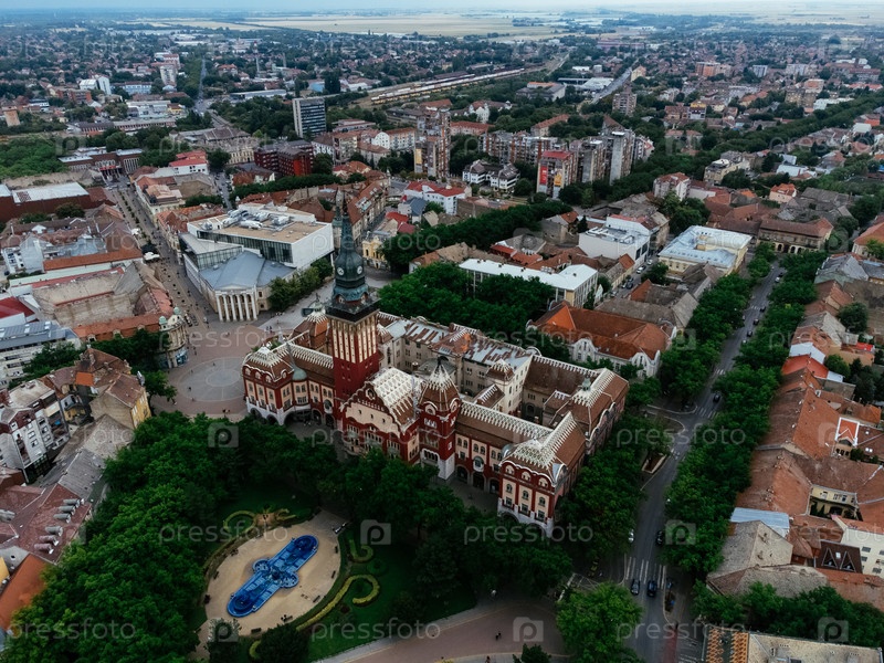 Вид с воздуха на мэрию Суботицы и главную площадь в Суботице, Сербия со своей исторической архитектурой. g