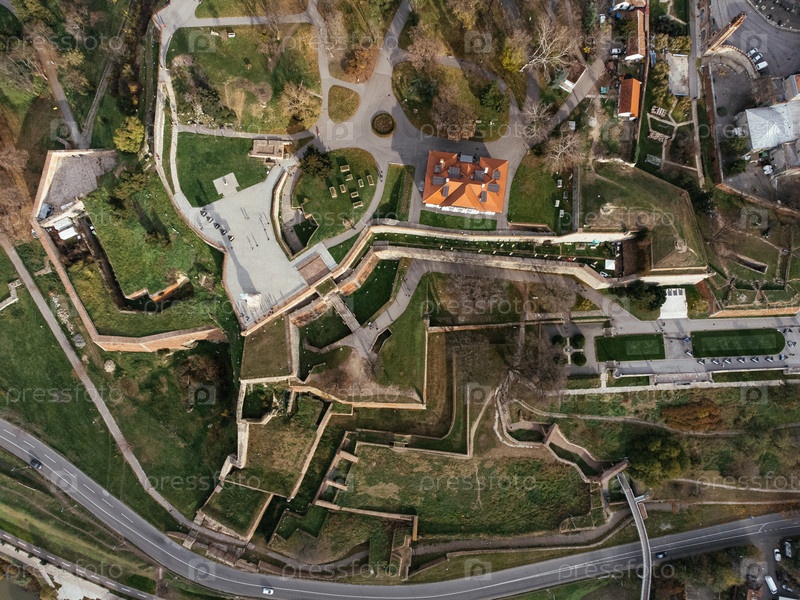 Вид с беспилотника: вид на город Белград сверху старой крепости Калемегдан, Сербия