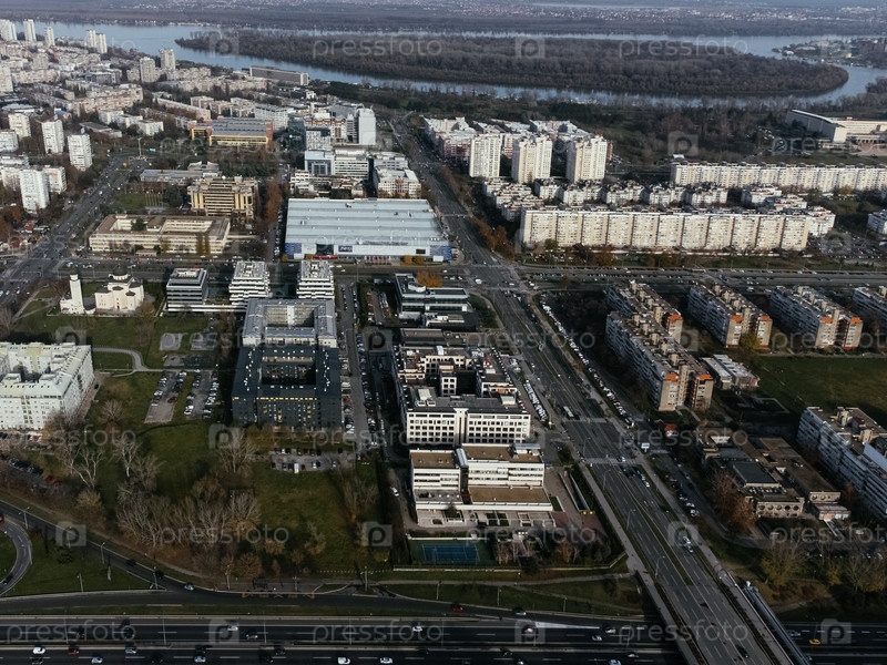 Вид с дронов города Белграда, района Новый Белград
