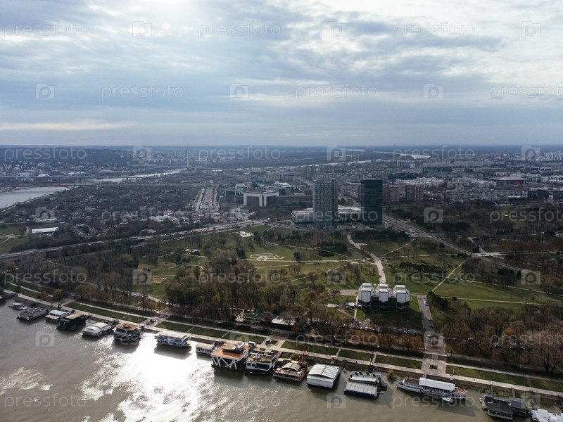 Вид с беспилотника: вид на город Белград сверху старой крепости Калемегдан, Сербия