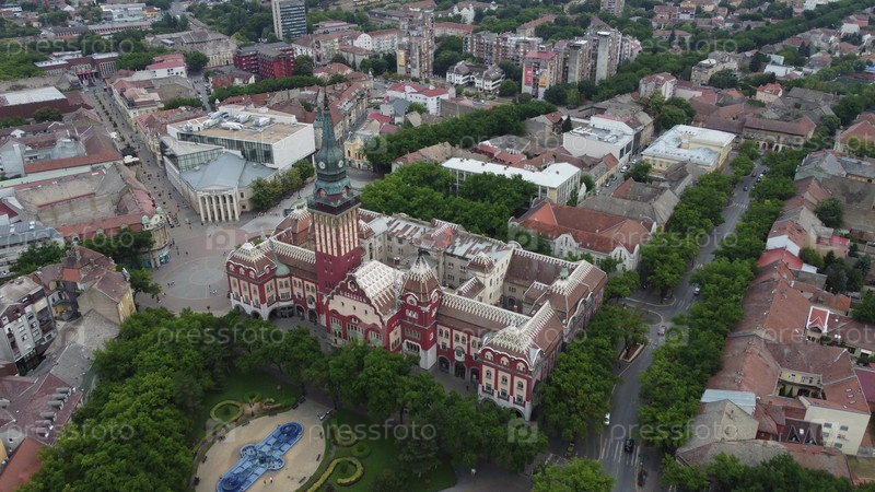 Вид с воздуха на мэрию Суботицы и главную площадь в Суботице, Сербия со своей исторической архитектурой. g