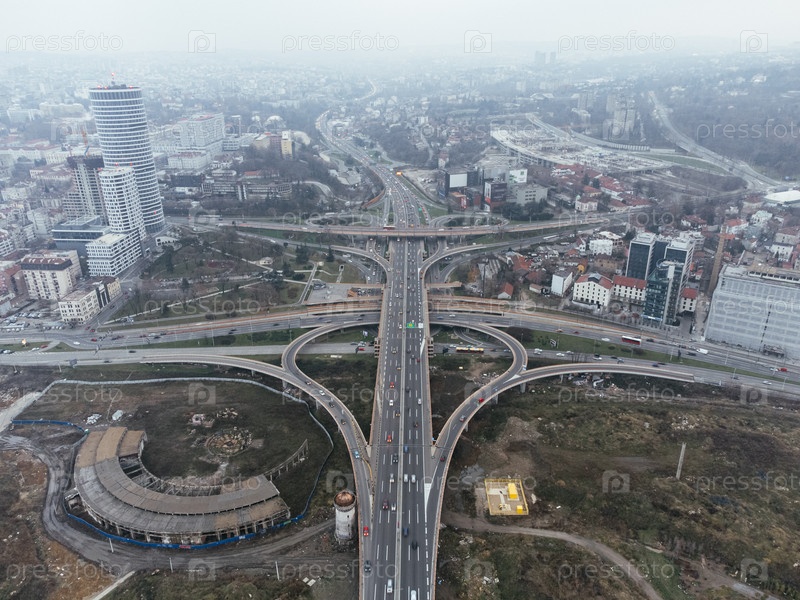 Вид с воздушного дрона на перекрестке дороги в Белграде, Сербия, Европа