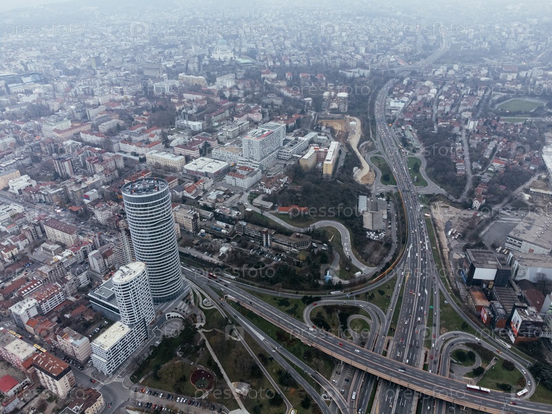 Вид с воздушного дрона на перекрестке дороги в Белграде, Сербия, Европа