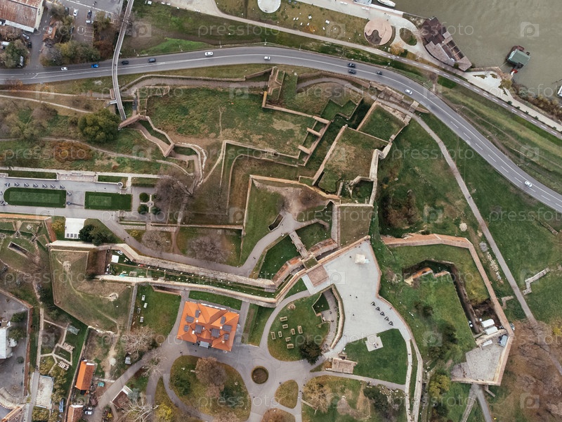 Вид с беспилотника: вид на город Белград сверху старой крепости Калемегдан, Сербия