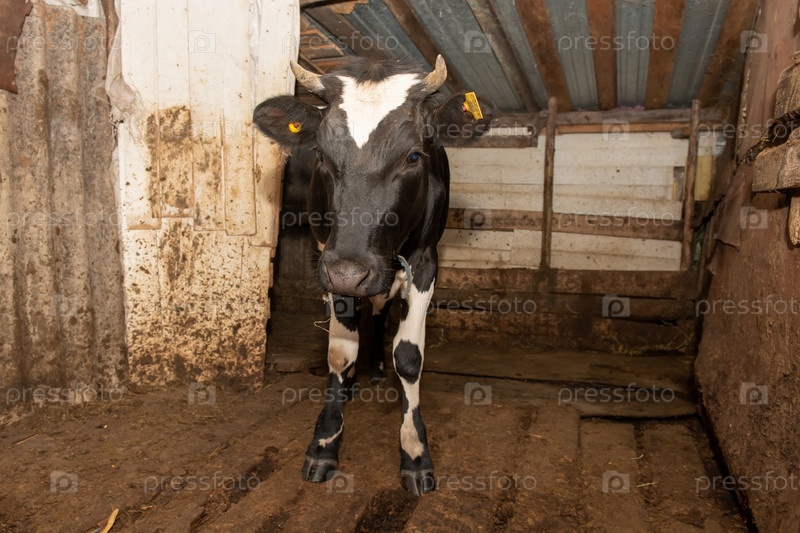 Корова зимним днем в стойле