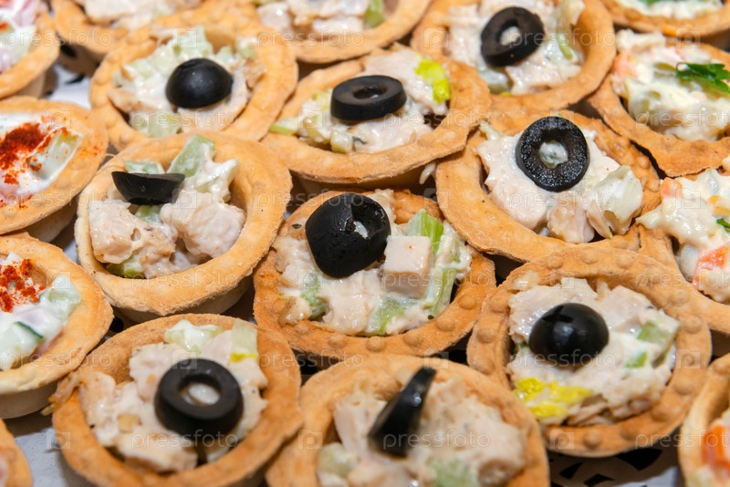 Канапе с рыбой, салатом, сыром, маслинами и оливками. Закуска на шпажках