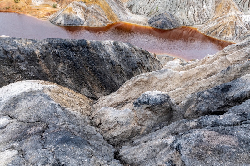 Уральский Марс. необычайно красивый летний пейзаж с красными озерами, цветными склонами и лесом. живописный горный массив. природные ландшафты, впечатляющее небо. природа Урала