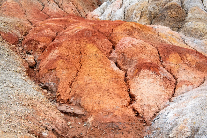 Уральский Марс. необычайно красивый летний пейзаж с красными озерами, цветными склонами и лесом. живописный горный массив. природные ландшафты, впечатляющее небо. природа Урала