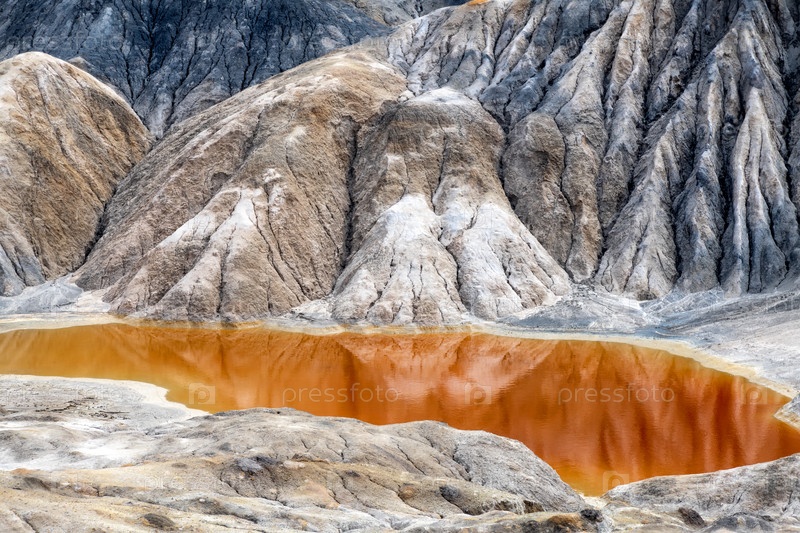 Уральский Марс. необычайно красивый летний пейзаж с красными озерами, цветными склонами и лесом. живописный горный массив. природные ландшафты, впечатляющее небо. природа Урала