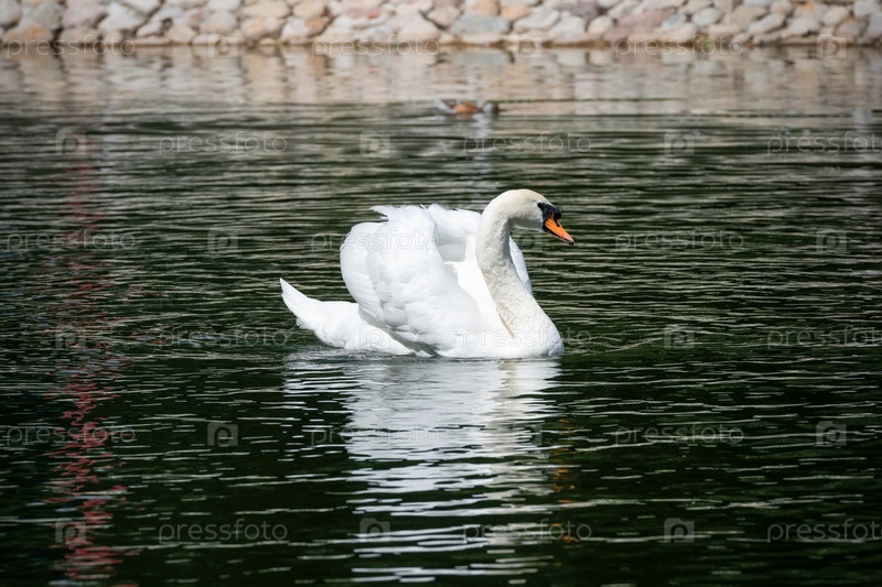 Лебедь-шипун на водной поверхности в городском парке
