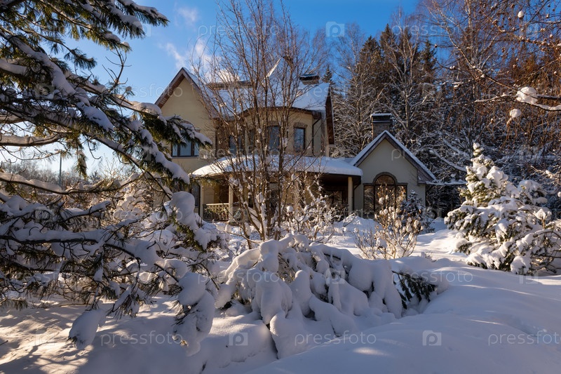 Загородный дом (дача) зимним морозным днем