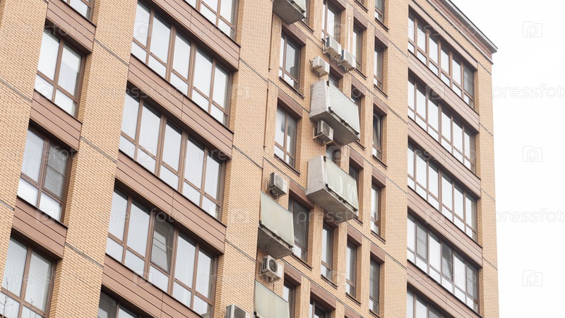 Большое кирпичное здание со многими окнами и крышным кондиционером