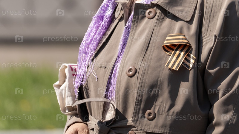 Москва, 09 мая 2025, Георгиевская лента на женской куртке, День Победы 9 мая
