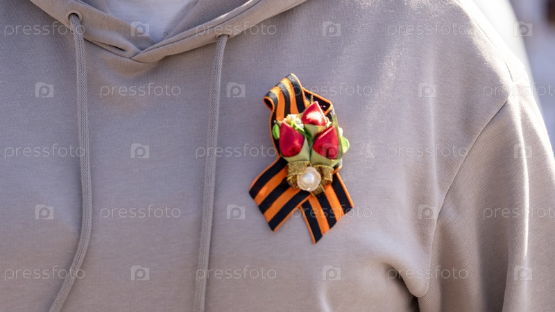 Москва, 09 мая 2025, Георгиевская лента на женской куртке, День Победы 9 мая