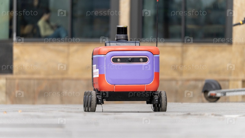 Робот стоит на тротуаре