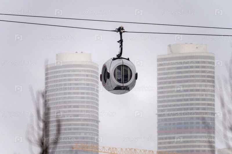 Москва, 30 декабря 2025 года, канатная дорога в Москве на ВДНКХ, кабина канатной дороги на фоне жилого комплекса Tricolor в Москве