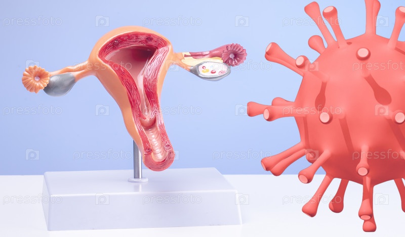 Модель женской репродуктивной системы и молекулы вируса - это концепция женских вирусных инфекций