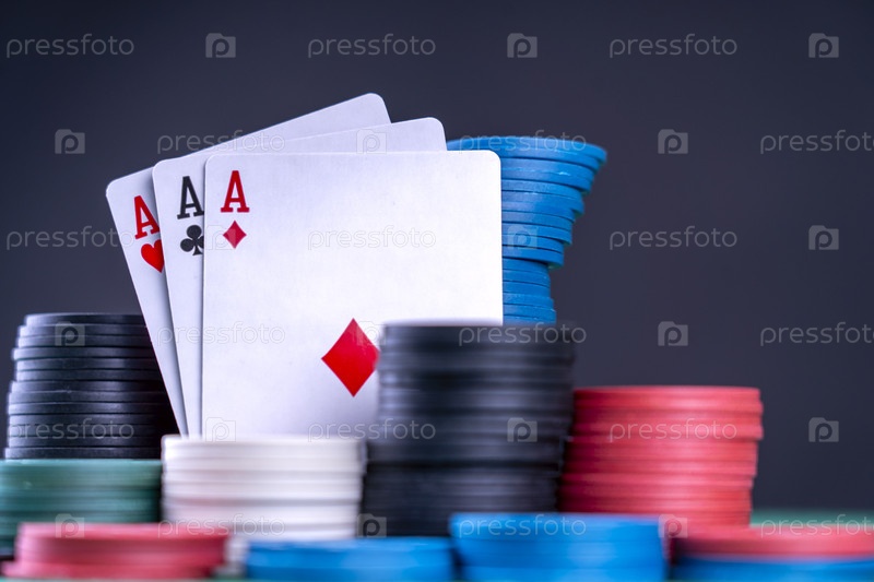 Три туза и фишки для покера. Азартные игры в казино. Хорошие карты. Трое тузов алмазов, туз клубов и туз сердец