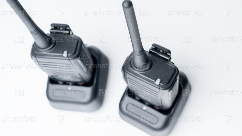 Два прослушивателя на белом фоне сверху. устройства радиосвязи