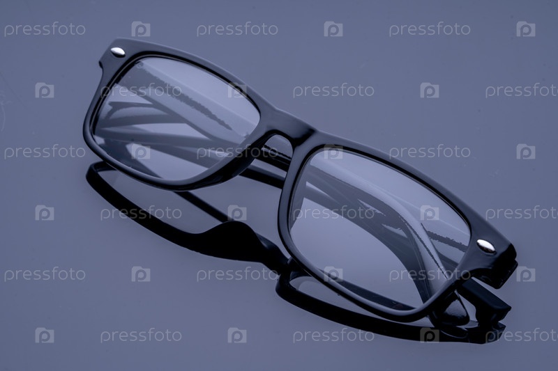 Черные прямоугольные очки на черном зеркальном фоне Студия съемки для зрения