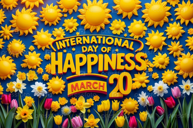 Привет Международный день счастья, Счастливый смешной улыбающийся человек Друзья Семейная ИИ генератор