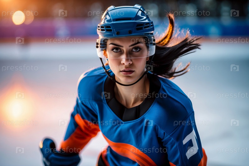 Спортивное хоккейное соревнование, женская команда в турнире зимних Олимпийских игр кататься на коньках AI Generative