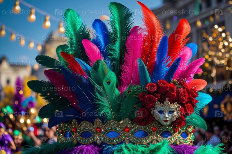 Карнавал украшенные плавучие суда ездят по улице в параде вечеринки традиционный Марди-Грас AI Generative