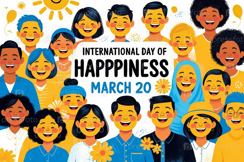 Привет Международный день счастья, Счастливый смешной улыбающийся человек Друзья Семейная ИИ генератор