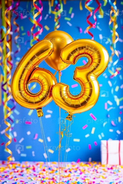 Гелий день рождения воздушный шар номер шестьдесят три, золотые буквы фигура 63 праздник праздничный фон