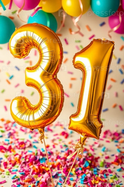 Гелий день рождения воздушный шар формы номер тридцать один, золотые буквы фигура 31 праздник праздничный фон декор