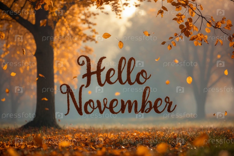 Карточная надпись Привет ноябрь осень-осень фоне желтые красные листья лист осенний AI Generative