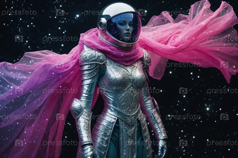 AI Generative Женщина-гуманоид в футуристическом космическом костюме, человек на будущем научном фантастическом завтрашнем фоне