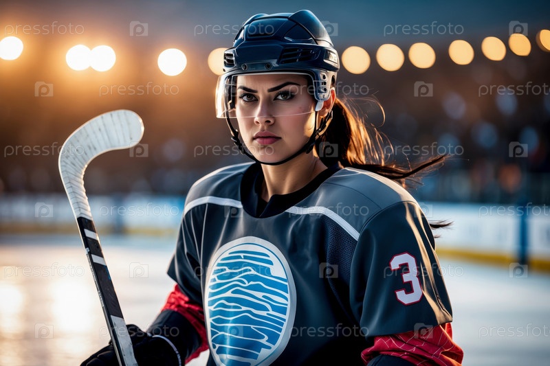 Спортивное хоккейное соревнование, женская команда в турнире зимних Олимпийских игр кататься на коньках AI Generative