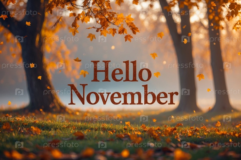 Карточная надпись Привет ноябрь осень-осень фоне желтые красные листья лист осенний AI Generative