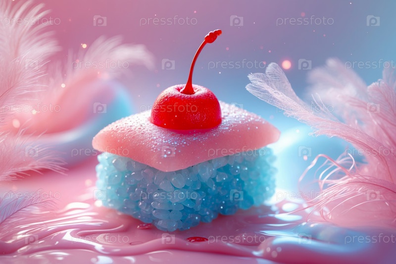 AI Generative Abstract необычное творческое искусство суши роллы фрукты декоративная радуга блеск фантастическая еда